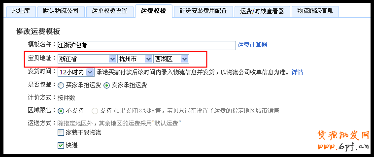 可點(diǎn)擊賣家中心—物流工具—運(yùn)費(fèi)模板,對(duì)應(yīng)的運(yùn)費(fèi)模板右上角的修改,選擇正確的寶貝地址即可,更新信息有24小時(shí)的滯后。