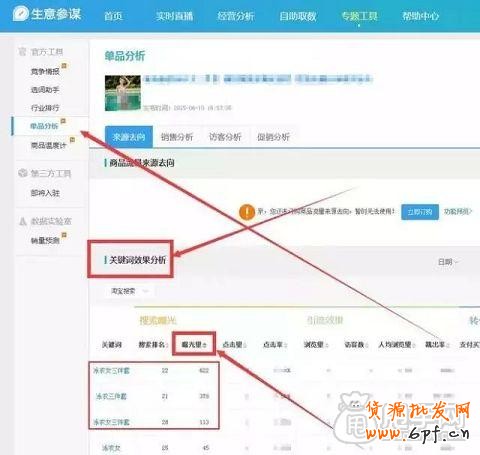 首先我們需要找到目標關鍵詞:生意參謀-經營分析-商品分析-商品效果-單品分析-關鍵詞效果分析;之后我們按照曝光量排序,找到主要曝光關鍵詞;通過流量獵手補充關鍵詞點擊率;補充關鍵詞轉化率,提高曝光量(原理為聚合模型)。