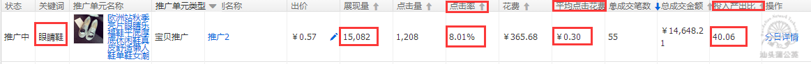 前期注重培養提升寶貝的點擊率,主要目的是為了降低接下來的引流花費,降低PPC,在相同的日限額下引進更多的流量來促進寶貝的轉化。
