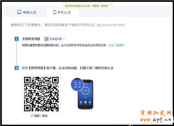使用阿里錢盾掃碼登陸開始進入認證流程。