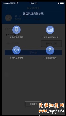 2、驗證手機號:點擊獲取驗證碼,輸入收到的短信驗證碼