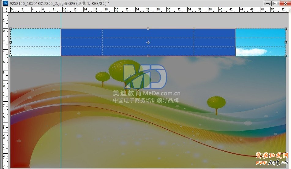 4.剪裁好的圖片是1500*150px,將藍色區域那塊隱藏(不要刪除,后面需要用到),保存圖片之后就得到如下圖,保存命名為2。
