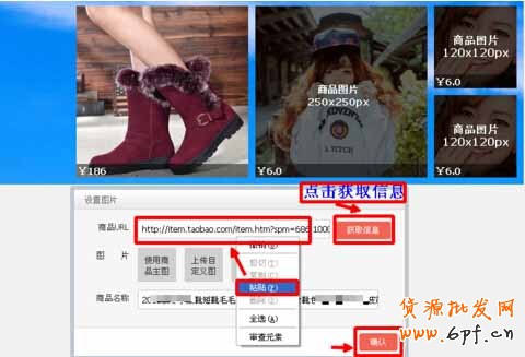 7、粘貼到商品URL框,點(diǎn)擊獲取信息、再點(diǎn)擊確認(rèn)即可。