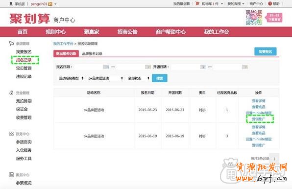 進入商家工作臺——報名紀錄——選擇需要設置的活動——點擊“營銷推廣”