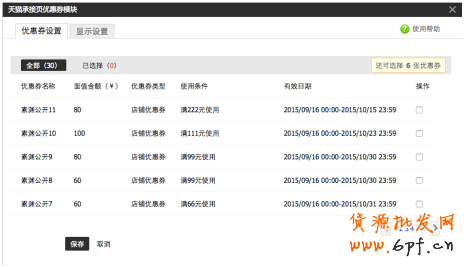 選擇優惠券,最多添加6張。