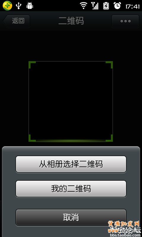 ②用您的掃碼神器(二維碼掃描器,微信里面的“掃一掃”也可以哦)掃描下您剛剛保存的圖片
