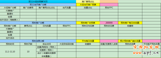 2.將雙十一活動推廣費用有效分解