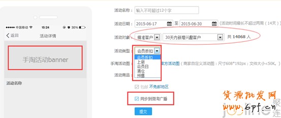 3.針對精準客戶群體設置專項活動,讓興趣客戶群體形成購買成為店鋪會員,可以同步到手機店鋪與微淘廣播;