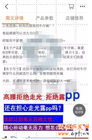 1、圖片問題:無線端圖片應該量身定做,不可套取PC端圖片,這區別商家還是得知道,圖片一旦過大就會顯示不全,從而影響網頁加載速度。如圖