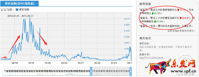 根據淘寶指數我們看出,嬰兒馬甲與寶寶馬甲 類目在過去的4年中都有一個趨勢,那就是每年的7月份行業開始上升,8月份到10月份是高峰期,11月份下旬后行業下滑。