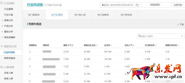 子行業的交易排行絕對是對葉子類目的一大福利,特別是 支付金額較上一周期 這個數據,包括買家數占比,可以清晰的告知我們當季最熱的子行業和競爭情況,這里列出了支付金額較父類目占比、支付金額較上一周期、賣家數占比,所有菜單都是按照百分比來展現的,清晰得知每個葉子類目的情況。