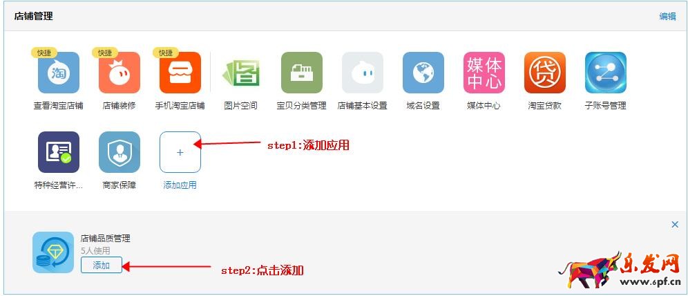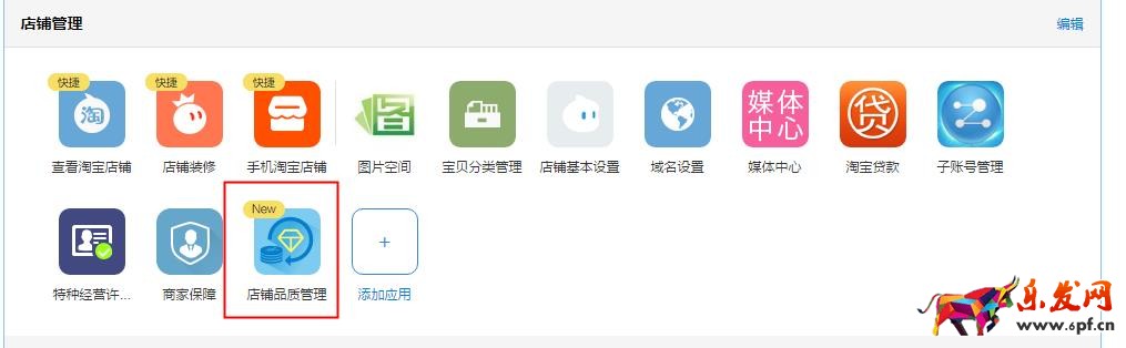 4、將“店鋪品質(zhì)管理”設(shè)置為快捷應(yīng)用