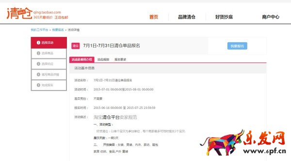 進(jìn)入清倉賣家中心,http://tqcfreeway.ju.taobao.com/qing/index.htm,點擊“我要報名”