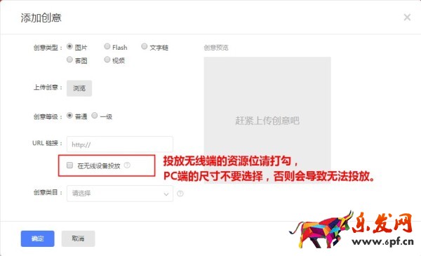 制作你所選擇的資源位相應尺寸的創意圖片,并先在創意管理中上傳,等待審核。