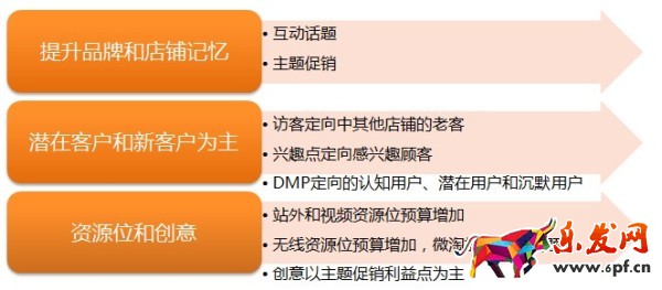 目的:雙11高潮期,通過前期用戶的蓄積,當天最主要就是刺激購買轉化,提升客單價,保持全天全時段流量持續高漲。定向溢價出到心里能承受價格,根據數據反饋及時調整。尤其是訪客定向、興趣點定向、DMP定向里的重點預熱期鉆展觸達過的客戶,包括鉆展展現過、點擊過的客戶,還有加收藏和購物車客戶,同事大流量資源位上要用通投來鋪面。如果未參加雙11會場,可提前引爆活動,用較低的成本獲取流量。