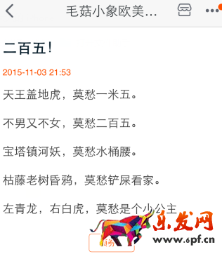 我相信,一個好的標題一定會引起粉絲的打開欲望,標題黨也是無孔不入噠。所以標題要么簡潔強勢,要么個性,要么沒節操,意思表達清楚。當然,對我而言,標題有時候很讓我頭疼,所以也總是文不對題,只為惡搞,所以跳到第二條吧