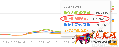 無線端的瀏覽量和訪客數也是占到所有終端的91%。