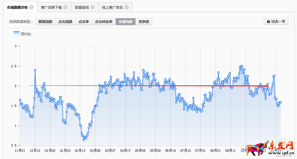 從賬戶趨勢(shì)圖可以看到,男裝市場(chǎng)的ppc在2塊錢左右,推廣后我們把ppc控制在0.6左右,一天可以引進(jìn)600個(gè)流量。