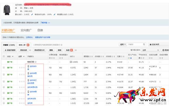 以夾克衫為例。寶貝關(guān)鍵詞的選取中,主要以熱搜精準(zhǔn)詞為主,根據(jù)運(yùn)營(yíng)思路,前期對(duì)200詞的地毯式搜索,逐步篩選替換,篩選出優(yōu)質(zhì)的關(guān)鍵詞,進(jìn)行鎖定排位。測(cè)試寶貝創(chuàng)意,提升點(diǎn)擊率以及關(guān)鍵詞的質(zhì)量得分,針對(duì)質(zhì)量得分高以及轉(zhuǎn)化好的關(guān)鍵詞進(jìn)行重點(diǎn)加大提流。