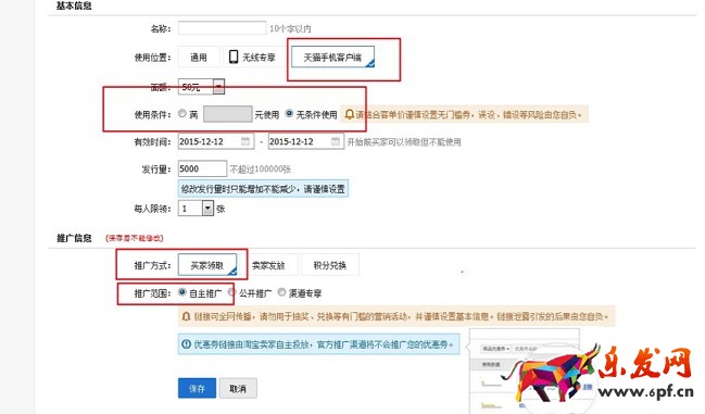 推廣范圍:必須選擇自主推廣,否則貓客專享優(yōu)惠券的范圍在券面上無(wú)法展示;