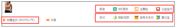 4、承諾、收藏、DSR評分、店鋪信譽、支付方式等