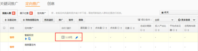 定向的價格基礎(chǔ),是這個地方的智能投放出價,后續(xù)的定向位置的溢價,定向購物意圖的溢價,基礎(chǔ)都是在智能投放的價格基礎(chǔ)上的,和本身的關(guān)鍵詞出價無關(guān),但是整體的時間折扣,整體的移動折扣,是同樣的起作用的。