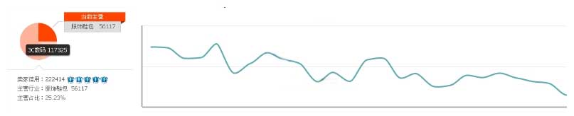 這是一家大麥電商服務(wù)的服飾鞋包店鋪,但是主營占比只有25.23,超過80%的成交通過低價的3C產(chǎn)品獲得,盡管該店鋪的信用等級提升,但是可以看到店鋪日均流量一直處在下滑的趨勢。