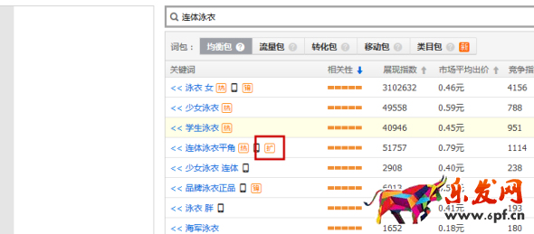 如果出現(xiàn)了“擴(kuò)”這個(gè)詞呢,就代表這是推薦的淘寶移動(dòng)搜索下拉框出現(xiàn)的詞。