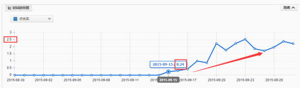 從上可以看出,這款產(chǎn)品,在一開始的點(diǎn)擊率只有0.2左右,經(jīng)過四五天的優(yōu)化,點(diǎn)擊率達(dá)到了2.5以上。