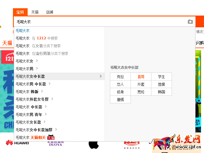 首頁搜索下拉列表: