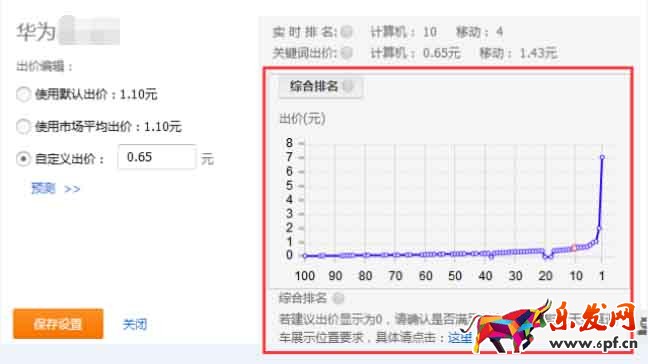 比如我們看到的華為的這個詞,就是這個情況啊,當然你也可以去驗證下,說到這里,有些人大概要想,如果不是品牌詞呢,也出現類似出價第一位為0,是為什么?那是因為這個詞,沒有直通車豆腐塊位置。