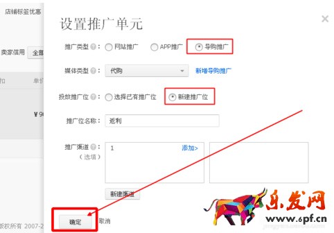 六、在設(shè)置推廣單元時(shí),有幾個(gè)選項(xiàng)需要淘寶客勾選的,推廣類目、媒體類型、投放推廣位,既然今天是教大家從店鋪中賺錢,當(dāng)然是選導(dǎo)購?fù)茝V、媒體類型:代購,最后點(diǎn)擊確定。
