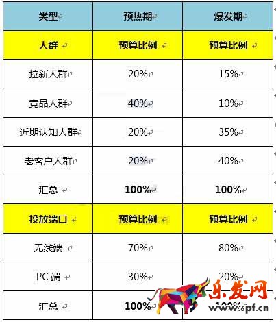 1、推廣預算:針對人群和投放端口做預算比例的劃分。
