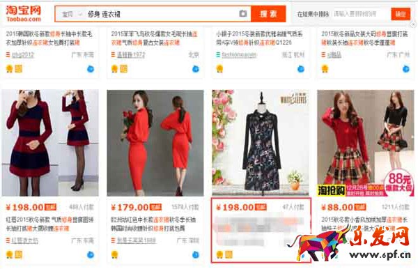 針對(duì)以上五點(diǎn),得出的結(jié)果就是以下這張圖,紅色框的商品,付款只有47人,并且是淘寶金牌賣家,而這家店鋪屬于勤上新的類型,在不斷上新也能獲得這樣的銷量算是可以的。