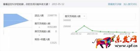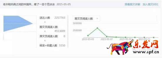 數(shù)據(jù)分析:這篇文章達到400萬+的閱讀量,是當(dāng)時粉絲數(shù)(200多萬)的2倍,可見迅速引爆朋友圈帶來大量的分享。