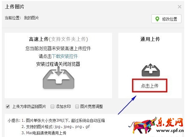 圖片的上傳是通過圖片空間進行,那么我們直接點擊“上傳圖片”了。