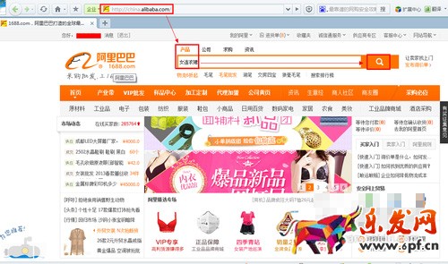1、進入阿里巴巴1688.com采購網搜索店鋪需要的貨源;