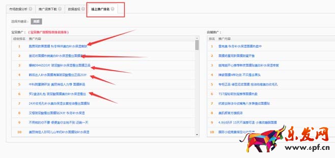 這個圖相信大家都能看懂吧,藍色和黃色的標識分別是寶貝數量和展現量,下面橫著的一排是出價區間,全是區間價格,好在區間都很小,測試幾次是能做到精確值的。這些數據能讀取到的有效參考指標有:查詢關鍵詞下寶貝的最高出價(貓叔查詢的是面膜 最高27.8 ) 最高展現獲取量出價3.9。