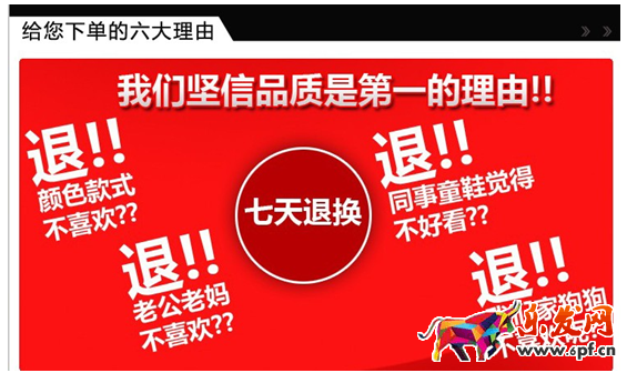 只要對產品不滿意,就可以全額退款,不要附加任何條件,這是零風險承諾策略最基本的運用。淘寶上的7天無理由退貨就是這種方法的具體運用,再比如下面的例子: