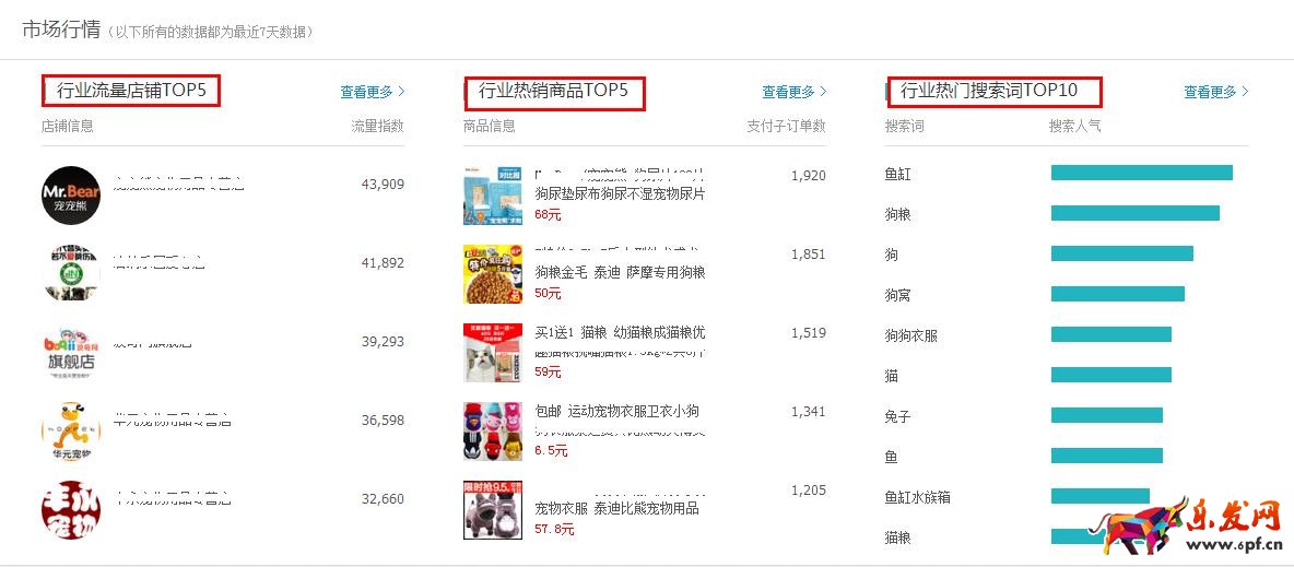 在圖中可以看到:“行業流量店鋪TOP5”、“行業熱銷商品TOP5”這就可以根據高流量店鋪中的款式去選擇流量高的寶貝,在有就熱銷單品,都可以去針對選擇的(另外:“行業熱門搜索詞TOP5”這帶也是賣家們可以去跟進選詞的)。