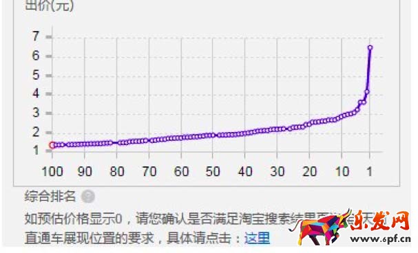 總結2:當出價的峰值顯示0元時,證明你那個位置無論你出多少錢,都不會展現在那個排名位置上。