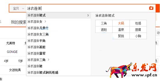 如在淘寶搜索“連體泳衣”和“泳衣連體”這兩個(gè)關(guān)鍵詞,連體泳衣搜索框下邊會(huì)出現(xiàn)在某類目下搜索,而泳衣連體卻沒有,說明連體泳衣該關(guān)鍵詞投放在正確相關(guān)類目下,泳衣連體比較不符合買家搜索習(xí)慣,說明連體泳衣該關(guān)鍵詞更好。