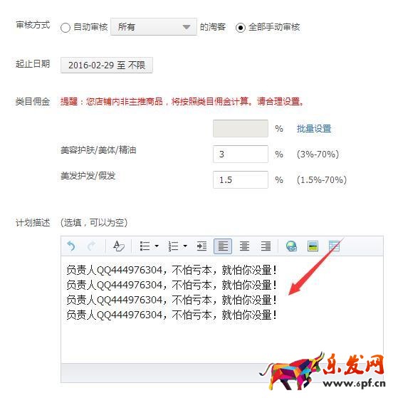 現(xiàn)在很多淘客安裝了淘客助手這個軟件,像以上方式設(shè)置定向計(jì)劃,把計(jì)劃名字改成自己的聯(lián)系方式,那些看你產(chǎn)品詳情的淘客,想要推廣你的產(chǎn)品就會很明顯的看到你的聯(lián)系方式。如果不夠明顯的話可以多設(shè)置幾個空白定向計(jì)劃,寫上自己的聯(lián)系方式。