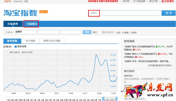 比如說,銷售的是連褲襪,那么關鍵詞可以是連褲襪、打底褲、九分褲等。然后我們把這三個詞都輸出淘寶指數搜索框,對比如