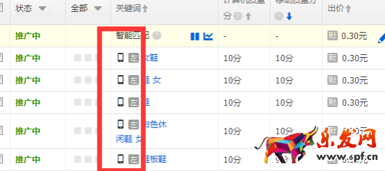 這個是最直接和最直觀添加關鍵詞的地方,可以直接看到哪些詞有手機標,哪些詞沒有手標,從中選擇自己需要的詞,同時這也是系統匹配出來的比較好的詞。但是要記住不是所以的詞都適合店鋪推廣的寶貝,要根據自己的寶貝屬性來添加需要的詞,不然也是事倍功半。