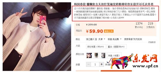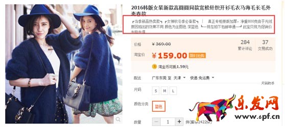但是,在這里這些我們都不考慮,我們只考慮頁面停留時間的影響。四張圖片,實際上給我們的感覺是不一樣的:第一張圖片,寫的一堆東西,我相信大多數(shù)人可能會有一樣的感覺,不想看,這樣就是浪費了時間,沒有任何效果;第二張圖片,也寫了一堆東西,但是我們注意到了三個關(guān)鍵詞,所以停留的時間長了一些。“新品熱賣”、“女神冬季必備”、“現(xiàn)在拍下申通包郵”,因為這三個用了一個特殊的符號標(biāo)注了一下;第三張圖,我相信就會有一部分人讀完了,尤其是小女生們,因為是很口語化的語言,跟你“面對面”去介紹這款衣服,頁面的停留時間會更進(jìn)一步的延長;第四張圖片呢?效果是不是更好?
