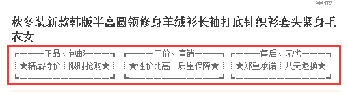 所以建議是什么?如果你想寫寶貝賣點,就要讓他發(fā)揮一定的功效,至少在頁面停留時間上,作用要體現(xiàn)出來,你寫了就要有人去看。那么,想讓人看,要注意那幾點呢?第一:不要拼湊,真正的把賣點提煉出來,然后或者分條列示,或者用特殊的符號標(biāo)明,要讓瀏覽者一眼就能注意到,只有注意到才會閱讀;第二:盡量用符合用戶閱讀習(xí)慣的語言,語氣等;第三:語言簡練,有分隔符。