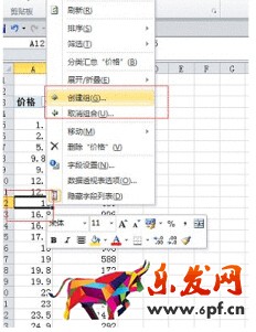 2、選擇有價(jià)格的一個(gè)單元格,右鍵店家創(chuàng)建組