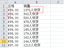 這里需要把產(chǎn)品價(jià)格跟銷量這2個(gè)數(shù)據(jù)提取出來(lái),用來(lái)分析二者的關(guān)系。