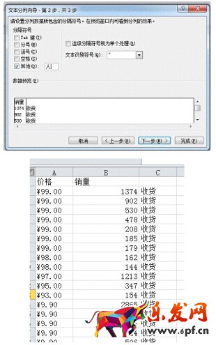 c、用同樣的方法去掉價(jià)格列的特殊符號(hào)